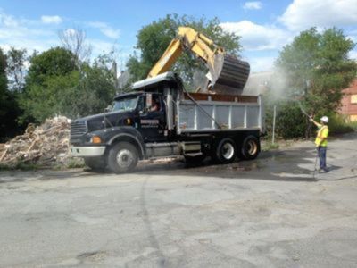 Excavation of contaminated soil, demolition of contaminated buildings (asbestos or other), removal of interior or exterior reservoirs, loading and transport of contaminated materials.
